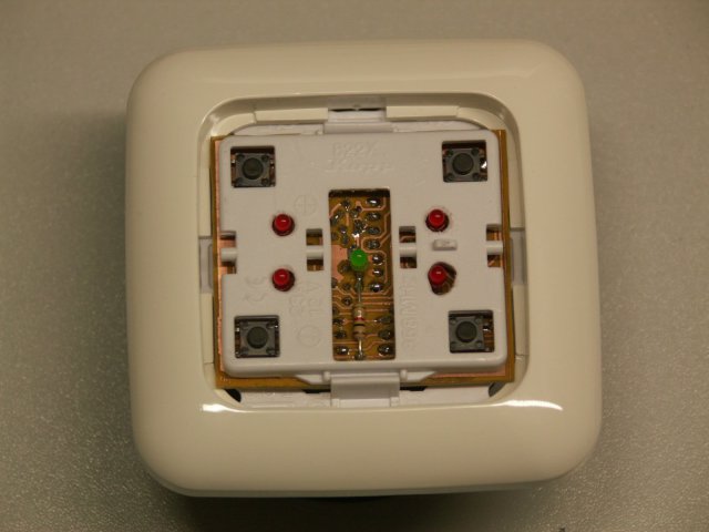 Dies ist die Firmware für einen 4-fach Taster mit 4 LEDs. Im Augenblick sind in der aktuellen Version 1.03 folgende Funktionen implementiert: