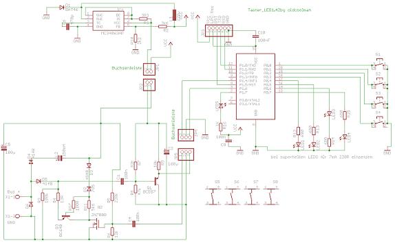Die übrigen Taster unten sind im Layout über den angeschlossenen gelegt, damit man DIL sowie SMD nehmen kann.