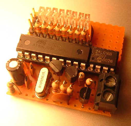 Die erste EIB Eigenbau Schaltung auf einer Lochraster-Platine erblickt das Licht der Welt, bzw. die Signale des Busses. Der Beweis ist angetreten, daß EIB-Selbstbau ohne Spezial-Bauteile möglich ist.